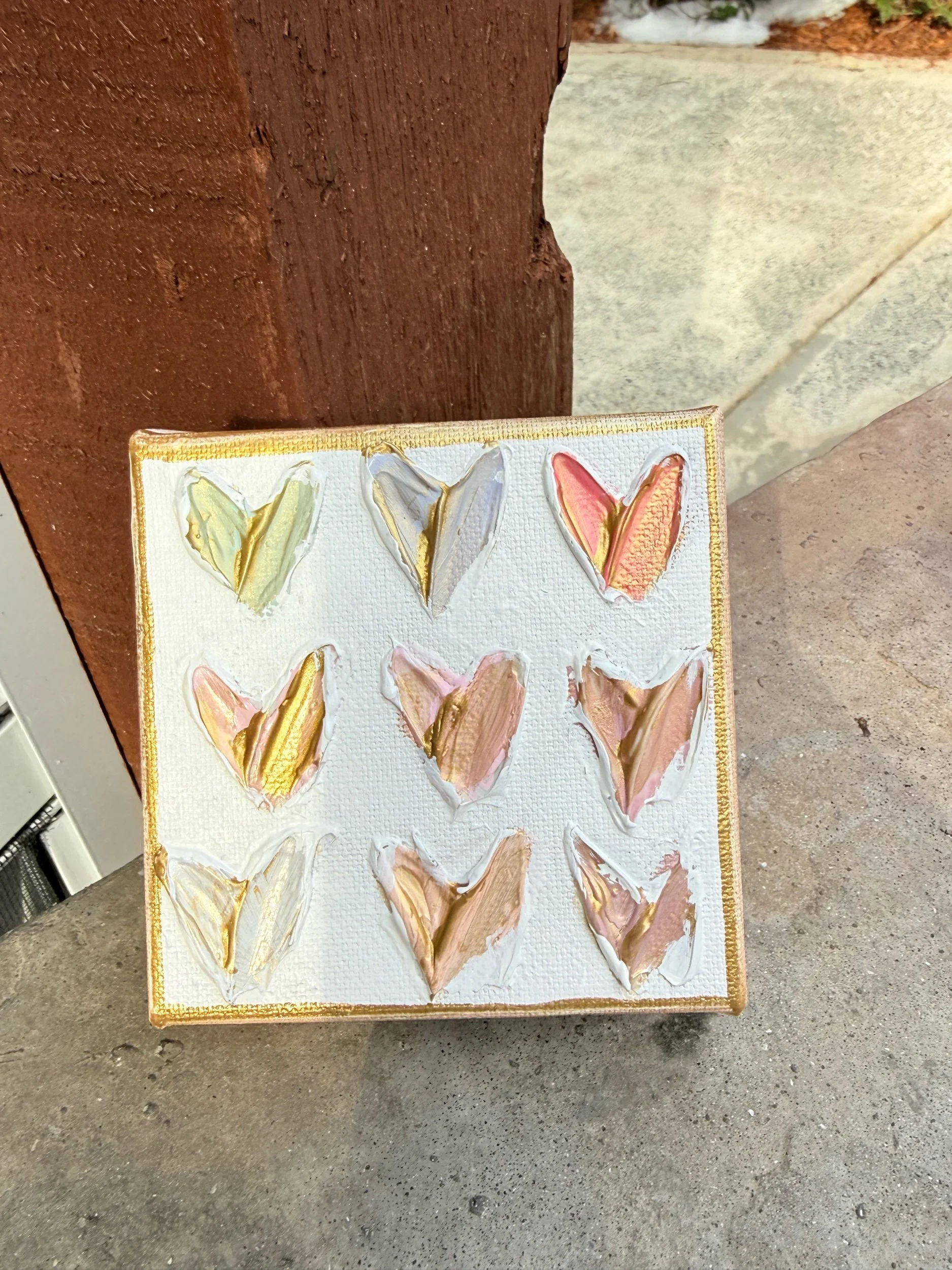This little piece is full of heart—literally. Designed to brighten any wall, shelf, or small space, this original artwork is a sweet reminder that love doesn’t have to be perfect to be beautiful.